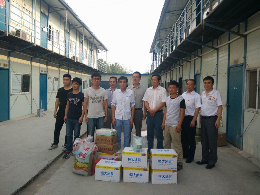 日下午,正值高溫,集團公司黨委副書記牛曙東,在黨委工作部主任徐文聯的陪同下,深入公司承建的皖北藥業二期工程,看望慰問在高溫酷署中仍堅守一線辛苦工作的職工們,為他們送上了綠豆、飲料、茶葉、白糖等防暑降溫物品,也為這個炎炎夏日增添了絲絲清涼。