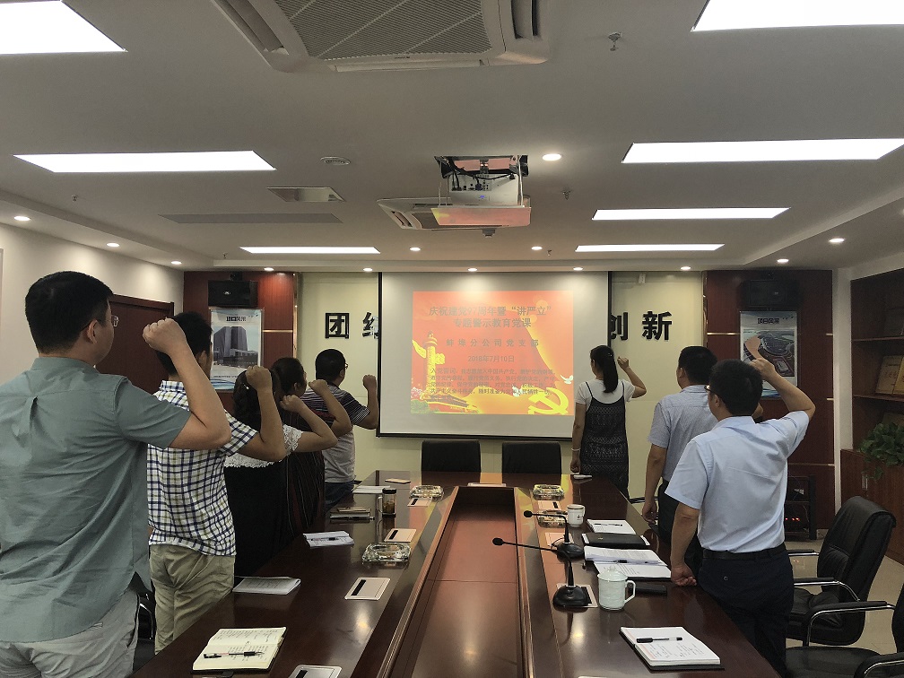 7月12日上午,蚌埠分公司黨支部在分公司會議室開展慶祝建黨97周年暨“講嚴立”專題警示教育黨課活動,此次黨員活動由分公司經理趙銘亮主持,機關全體黨員參加。