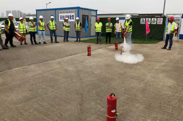 演練正式開始前,項目部全體人員在“安全消防演練”的紅色橫幅上鄭重的簽下了自己的名字。演練按預定方案進行,項目部安全員闡述了本次演練的目的和意義,介紹基礎的火災消防知識,點明掌握火災逃生的基本方法。項目管理公司安全工程師針對項目部可能存在的火災隱患做了重點闡述,并指出項目部可能發生火災的地點主要為生活區,重點強調各班組長在生活區要做好宣傳帶頭作用,將火災隱患扼殺在萌芽之中。項目技術負責人李冬現場講解并示范了常見的手提式干粉滅火器的使用方法,而后參演人員親自體驗了如何正確的使用滅火器。消防演練緊張有序,安全保證工作到位,演練達到預期效果。