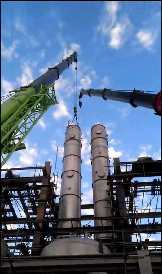 安慶分公司力天項目部完成輕組份塔、純苯酐塔吊裝任務
