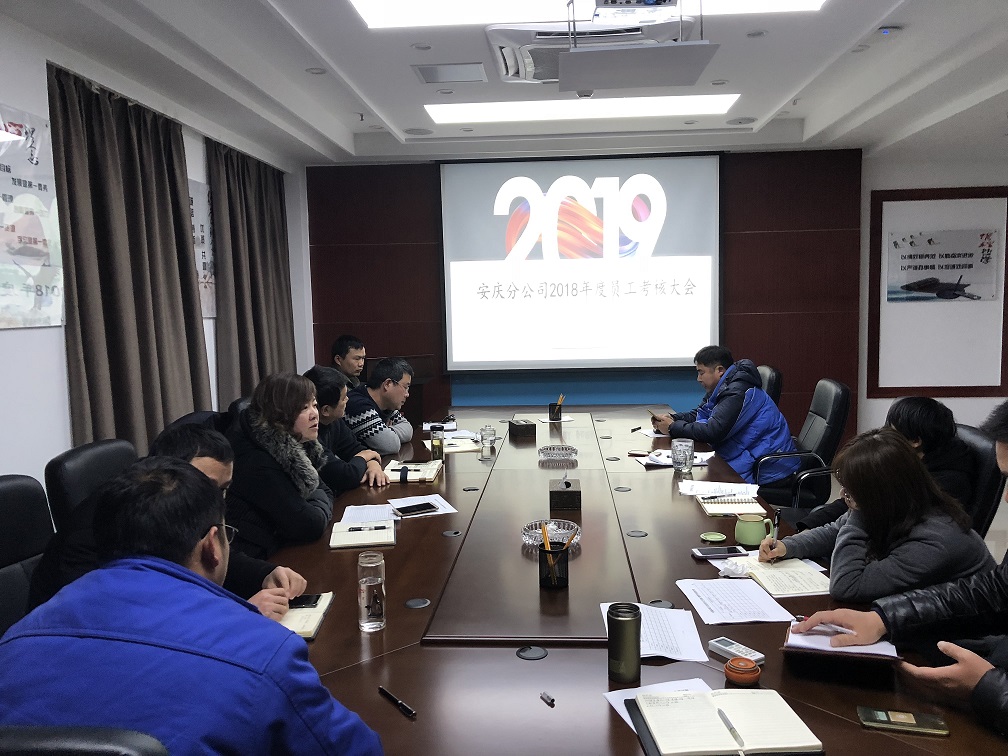 1月6日下午,安慶分公司召開2018年度員工考核大會,會議由黨支部書記劉紅艷主持,分公司全體員工參加會議。