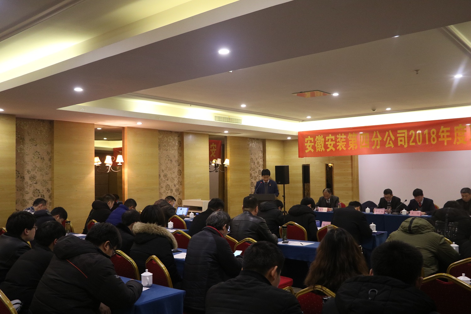 2018年1月31日上午,安徽安裝第四分公司在合肥順利召開2018年度職工大會。公司黨委委員、紀委書記、工會主席李寬旭應邀出席了大會。