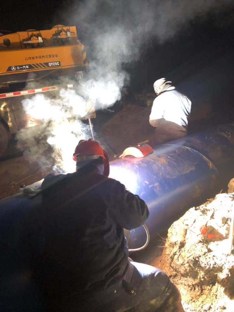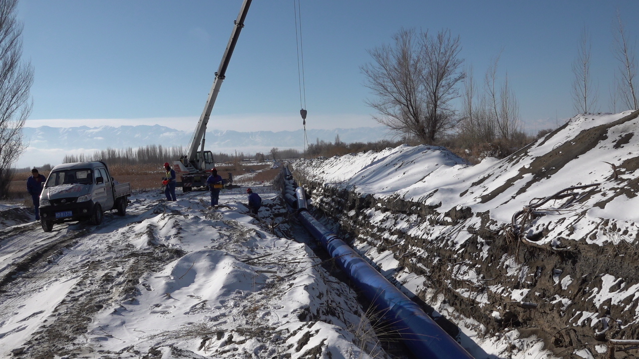 中水回用工程是在野外長(zhǎng)距離作業(yè),管道沿途需要穿過(guò)高速、省道、鐵路、亞歐光纜及眾多鄉(xiāng)村道路和田間陰溝,施工區(qū)域內(nèi)有農(nóng)田、戈壁、沙漠,沼澤等,自然環(huán)境極其惡劣,施工地質(zhì)極為復(fù)雜。尤其在步入11月,新疆烏蘇市正式進(jìn)入寒冬季節(jié),期間平均氣溫都在零下十度以下,并時(shí)常飛舞著雪花,由于晝夜溫差大,夜間項(xiàng)目上的氣溫更是達(dá)到零下二三十度,這給項(xiàng)目部施工帶來(lái)了嚴(yán)重挑戰(zhàn),但項(xiàng)目部員工沒(méi)有被惡劣的環(huán)境所嚇倒,他們“逢山開(kāi)路、遇水搭橋”,努力克服各方面不利因素,合理安排施工進(jìn)度計(jì)劃。全體職工發(fā)揚(yáng)安徽建工人“特別能吃苦,特別能戰(zhàn)斗”的企業(yè)作風(fēng),在公司“大干60天”勞動(dòng)競(jìng)賽的正向激勵(lì)下,不畏環(huán)境艱苦,抓質(zhì)量,保安全,戰(zhàn)荒漠,斗嚴(yán)寒,每天堅(jiān)持戰(zhàn)斗在生產(chǎn)第一線,哪里有施工,哪里就有管理人員的堅(jiān)定身影。