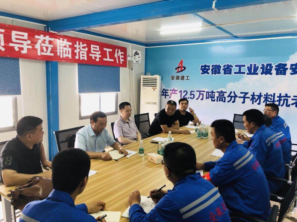 胡六中一行對項目基本情況簡單了解后,在現場幾位主要管理人員的陪同下冒著酷暑深入現場了解施工情況。每到一處都仔細詢問,對現場施工過程中的安全、質量、進度等存在的問題當場指出,并強調注意細節,切不可疏忽大意。