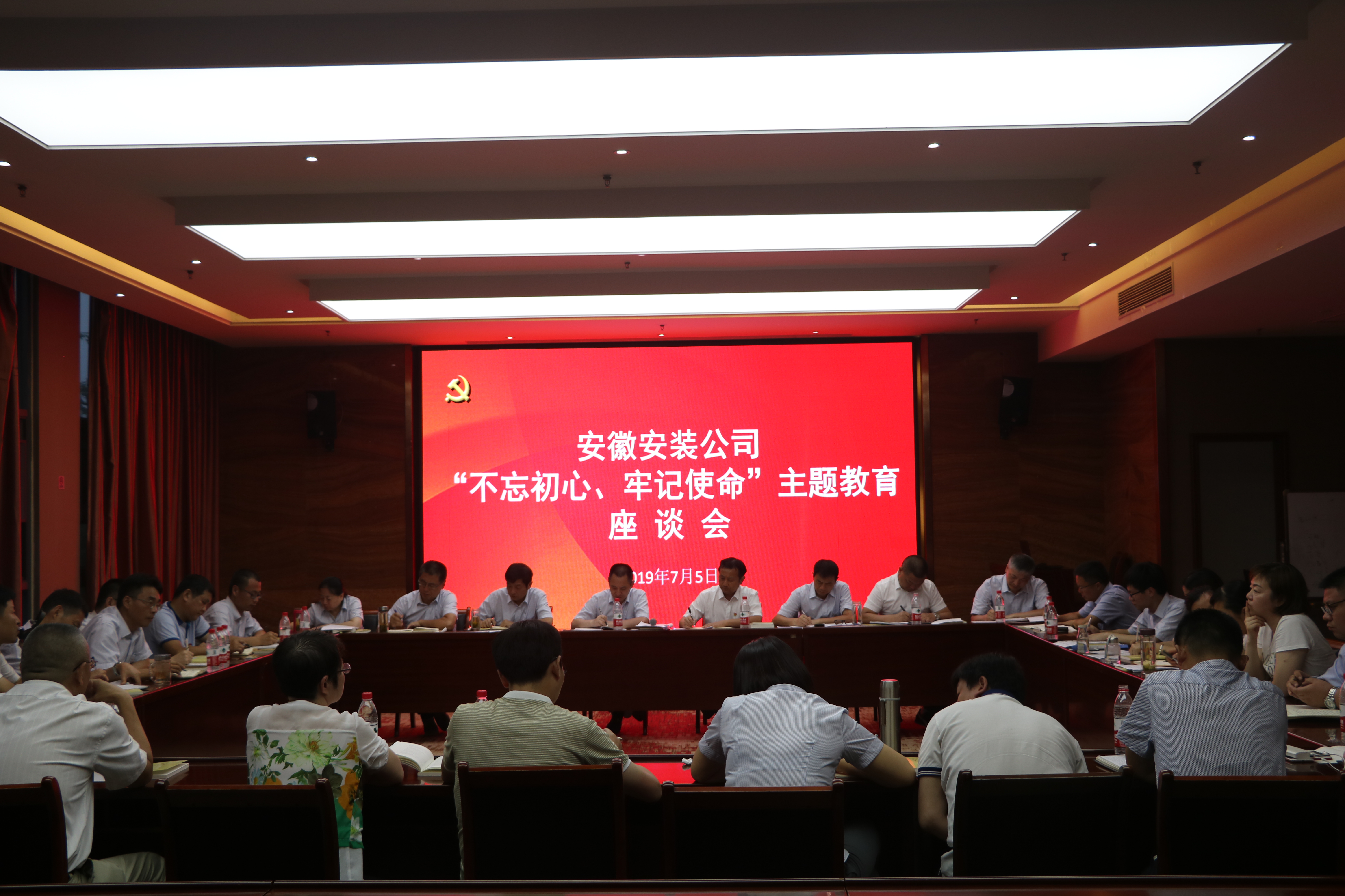 7月5日,安徽安裝公司召開“不忘初心、牢記使命”主題教育座談會,公司領(lǐng)導(dǎo)班子成員出席會議,機(jī)關(guān)部門負(fù)責(zé)人、所屬單位黨政負(fù)責(zé)人參會。