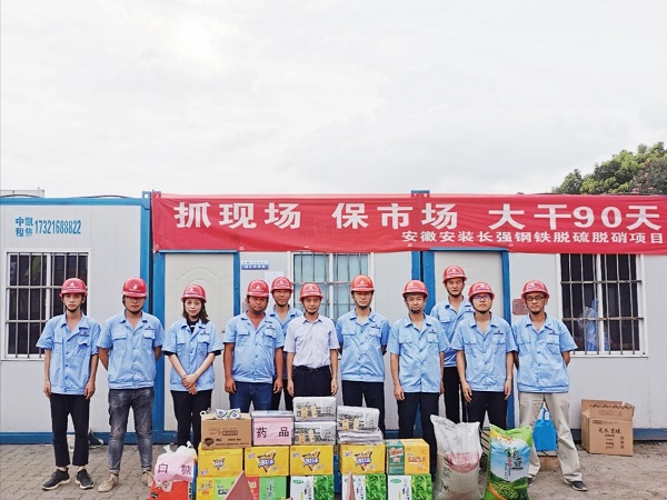 夏日酷暑難耐,高溫導致室外施工作業困難重重,員工身體負擔較大,公司工會準備了綠豆、白糖、毛巾、十滴水、香皂、飲料等防暑降溫食品、藥品,專程送到長強鋼鐵項目工地。在施工現場公司領導李寬旭書記親手將一箱箱、一件件物品送到項目班組職工的手中,讓項目所有參戰人員烈日高溫下感受到絲絲清涼。