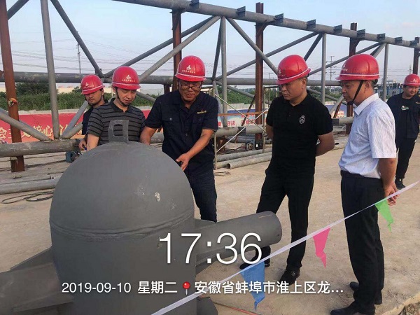 在蚌埠淮河水科院項目調研時,胡六中首先深入施工現場實地查看項目進展情況,認真聽取項目經理張斌對項目工程概況、現場組織、工程進度、施工難點、重點等情況的介紹,并對項目存在的問題予以指導。他指出:淮河水科院項目屬于大跨度管桁架結構,目前正處于施工高峰期,具有一定的施工難度,他要求項目部,一要以現階段正在開展的勞動競賽活動為契機,團結一心,確保工期、安全、質量;二要加強施工力量,確保形象進度,根據施工計劃倒排施工工期,兼顧項目成本;三要倡導項目經理負責制,關注員工所思所想,注重加強項目團隊建設;四要樹立品牌意識,確保該項目創建“黃山杯、安裝之星”等榮譽,同時做好項目二次經營,要堅持“建一個項目,樹一個精品,交一方朋友,鞏固一方市場,培養一個團隊”;五要解放思想,正視困難,堅定信心。