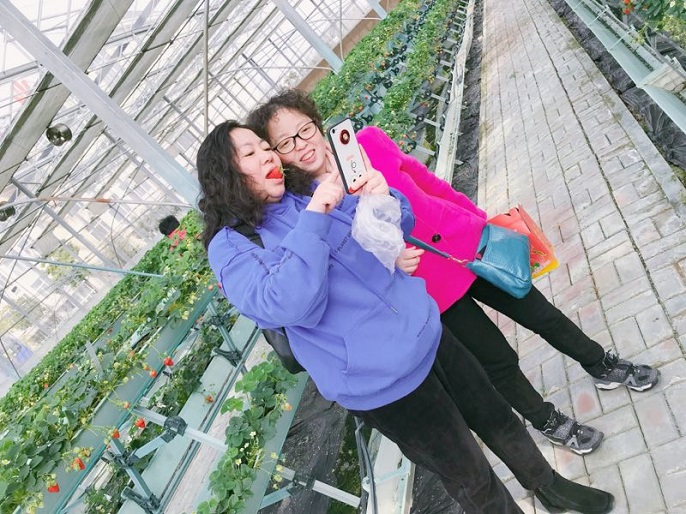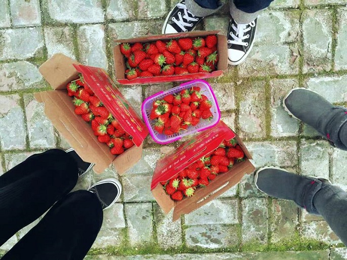 沐浴著清晨的第一縷陽(yáng)光大家乘車出發(fā),一路上互相交流,歡聲笑語(yǔ)。 三月微風(fēng)暖,九州春意濃,草莓大棚里一片生機(jī)勃勃,翠綠的葉子、鮮紅的果實(shí)、芬芳的果香都讓人感到心情格外舒暢。她們小心翼翼地行走在草莓土壟之間,尋找自己的“戰(zhàn)地”,一邊品嘗,一邊采摘,感受著自己動(dòng)手的樂趣與收獲的喜悅。趁著美景,一起合影或是自拍,不時(shí)傳來歡快的笑聲。一個(gè)多小時(shí)后,每個(gè)人都有了豐碩的“戰(zhàn)果”,臉上都洋溢著燦爛的笑容,在這里留下了歡樂的記憶。