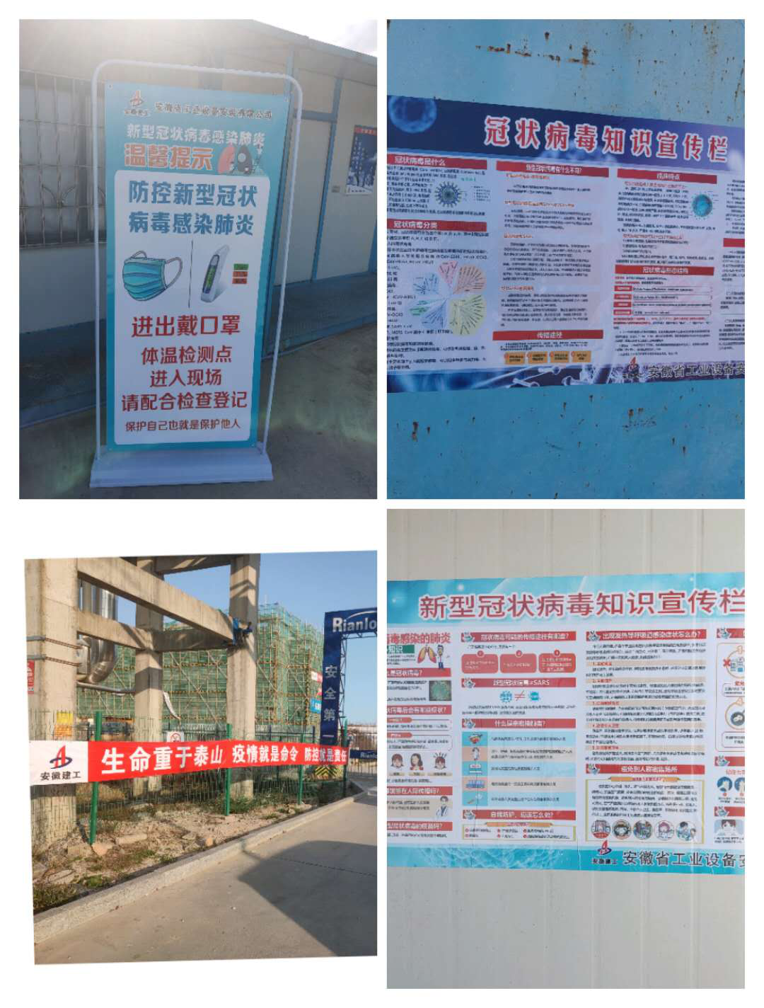 一是編制方案。根據(jù)公司《安徽安裝公司工程項(xiàng)目疫情防控期間復(fù)工工作須知》要求,項(xiàng)目部編寫了疫情防控方案和應(yīng)急預(yù)案,確保做到“七個(gè)到位”:防控機(jī)制到位、員工排查到位、設(shè)施物資到位、內(nèi)部管理到位、宣傳教育到位、安全生產(chǎn)到位、信息報(bào)送到位,確保復(fù)工機(jī)制健全到位。