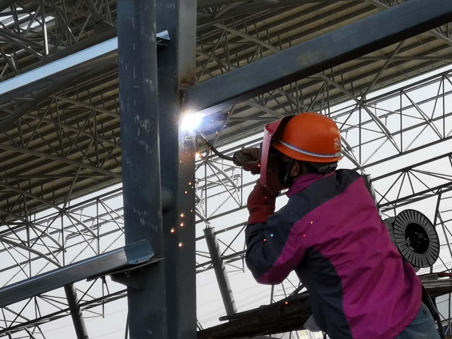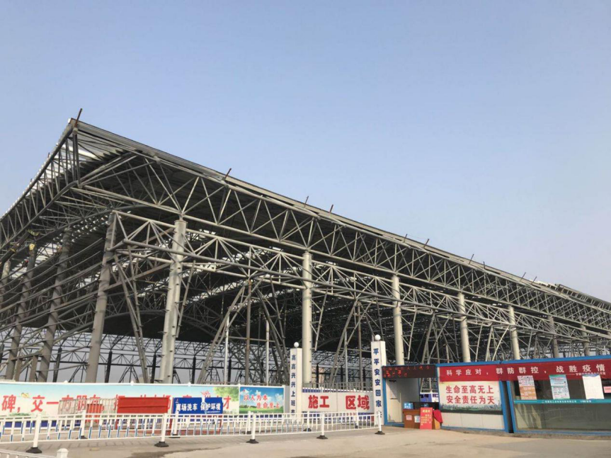 安徽省·水利部淮河水利委員會水利科學(xué)研究院淮河試驗(yàn)研究中心(水工河工模型試驗(yàn)廳)一期工程,水工河工模型試驗(yàn)廳主要進(jìn)行各種水流模型試驗(yàn),通過整體水工模型試驗(yàn),率定泄洪閘、排沙孔泄流能力、描述進(jìn)出口水流流態(tài),對護(hù)岸范圍提出合理的防護(hù)方式,優(yōu)化泄洪消能建筑物布置和體型等發(fā)揮巨大作用。項(xiàng)目主要施工內(nèi)容為新建水工河工模型試驗(yàn)一廳鋼結(jié)構(gòu)及附屬土建工程,建筑面積約20000㎡,基礎(chǔ)形式為長螺旋鉆孔灌注樁,結(jié)構(gòu)形式為排架柱(圓鋼管)+三肢管桁架結(jié)構(gòu),頂部成弧形空間結(jié)構(gòu)形式,桁架跨度約100m,跨中為四聯(lián)拱(三角桁架),安裝高度最高24m,鋼材用量1800多噸,為目前安徽省建設(shè)第二大跨度的鋼結(jié)構(gòu)工程。目前,該項(xiàng)目整體鋼結(jié)構(gòu)建設(shè)已基本完成,主要施工內(nèi)容是水電安裝、裝飾、幕墻各個(gè)分項(xiàng)建設(shè)。