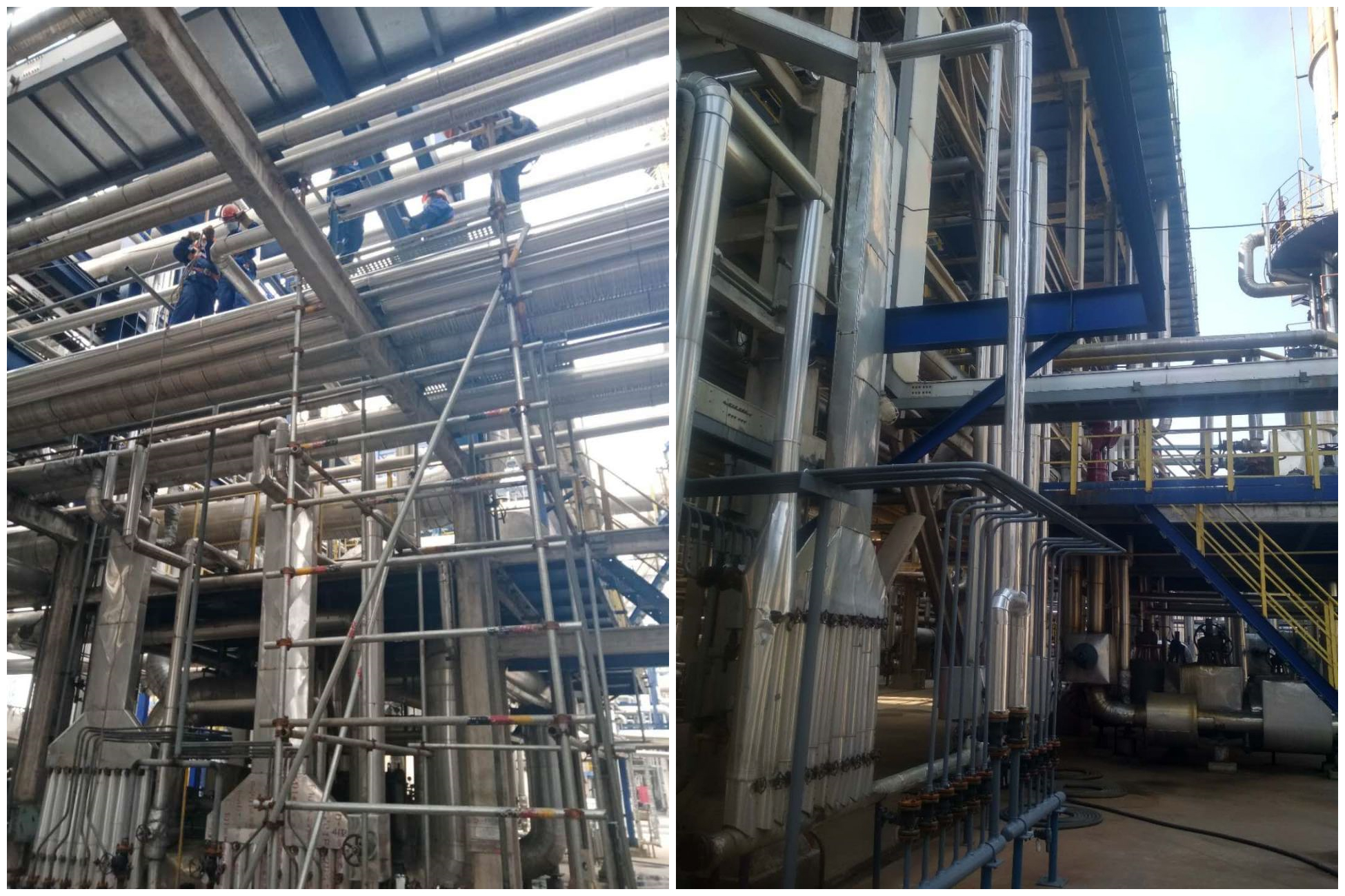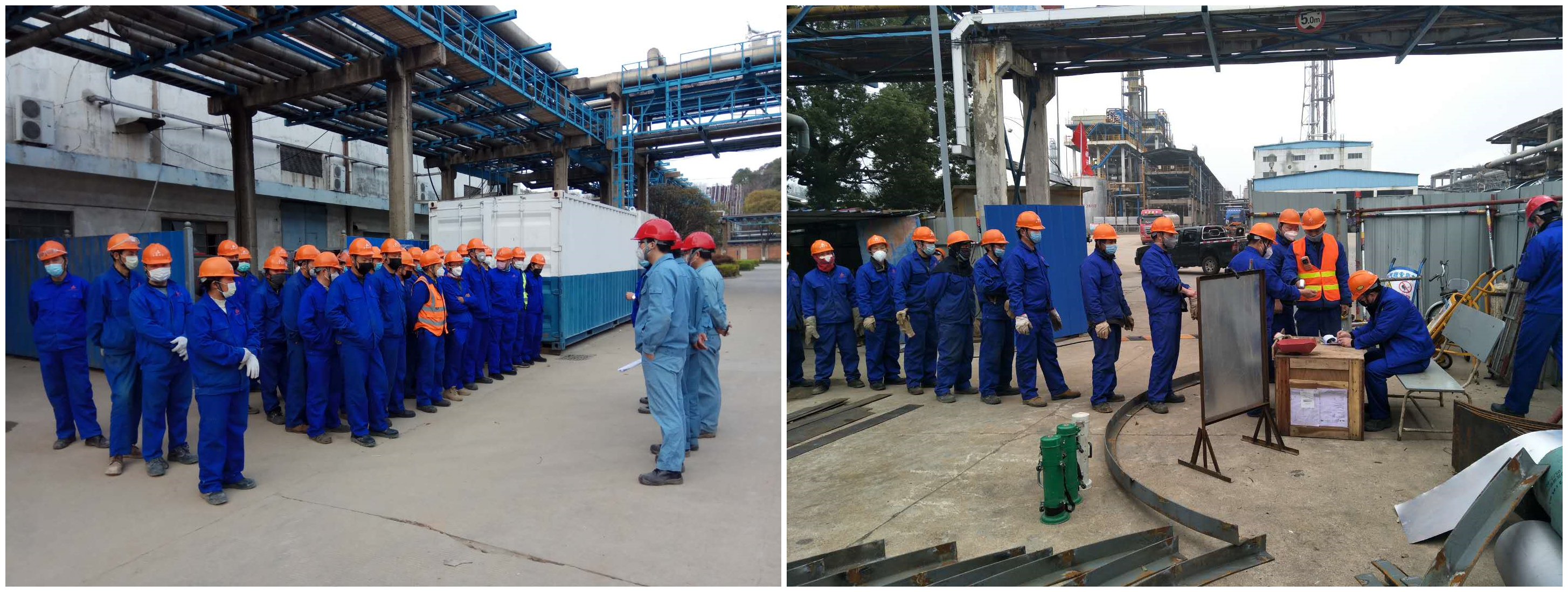 此次復工建設的項目共有五項:Ⅰ、Ⅱ硫磺回收裝置增設煙氣后堿洗流程項目、污染源視頻監控項目、新增機泵密閉排放項目、柴油加氫伴熱系統改造項目、腈綸阻燃纖維生產技術改造項目。涉及到工藝、設備、電氣、儀表、監控、土建等方面的施工,其共同特點都是以改建、擴建及檢修為主,工期要求緊、交叉及高空作業多、生產工藝復雜、質量要求高,且項目基本都在老廠區內,場地一般都很狹小,存在吊裝作業難度大、安全風險系數高等困難因素。同時在疫情期間,項目部要為全體項目人員創造良好的、安全的施工環境,必須做好“防疫、抗疫”防控工作,由此更加使人感覺時間緊,任務重。