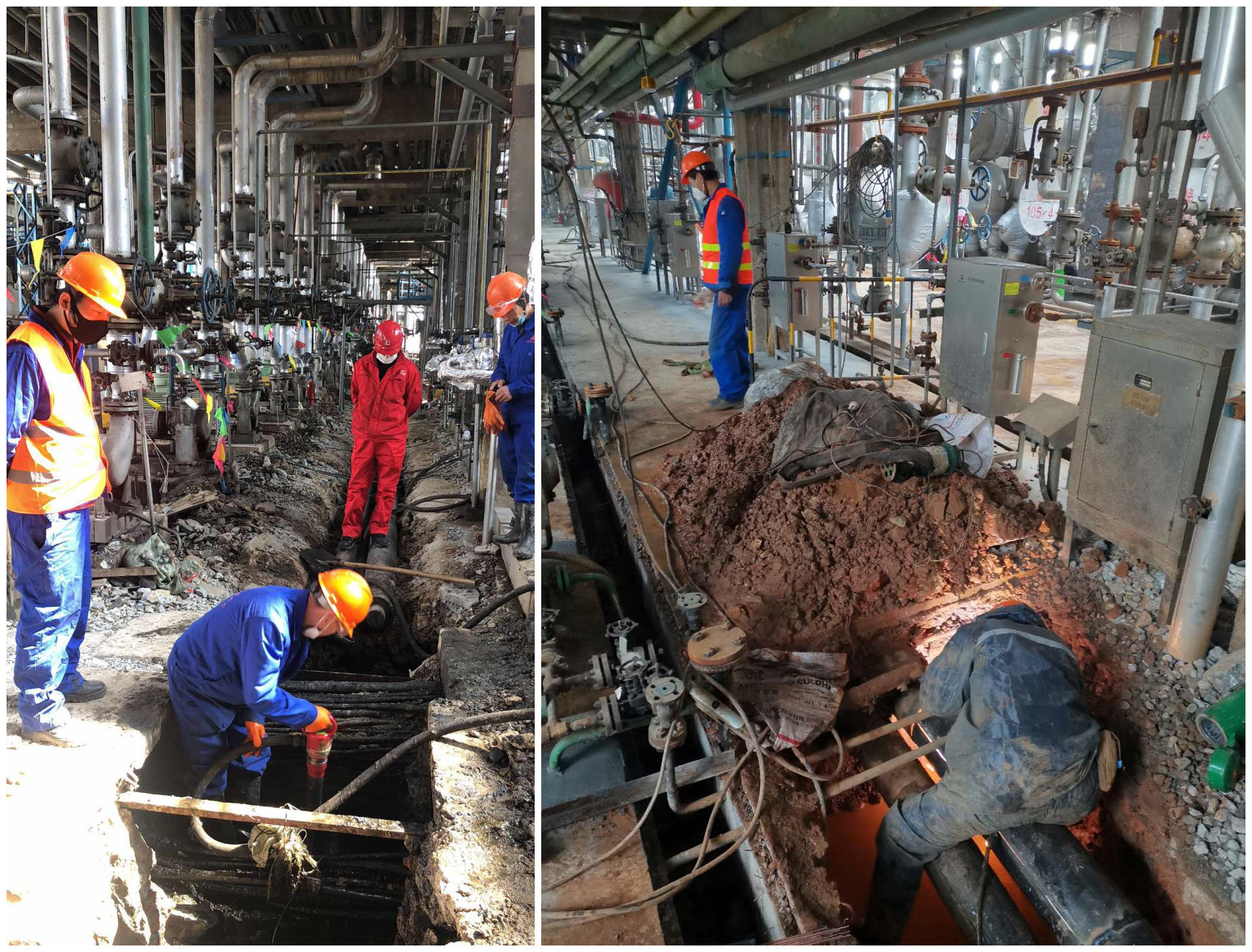 眾人拾柴火焰高,團結起來勇向前。施工工人們在各個項目現場忙著搭建腳手架、吊裝設備、焊接管道、敷設電纜、調試儀表、開挖基坑、排水及設備基礎的施工等等。現場管理人員也是有條不紊的按工序要求組織工人們交錯施工,五個項目作業面全力展開……緊張繁忙的施工氣息撲面而來。