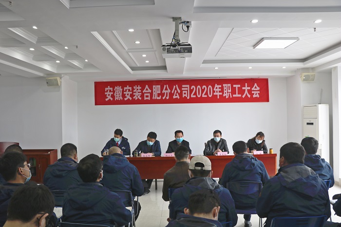 3月27日上午,安徽安裝合肥分公司召開2020年職工大會。公司黨委書記、董事長胡六中,紀委書記、工會主席李寬旭出席大會并講話。分公司黨支部書記胡迎東主持會議。