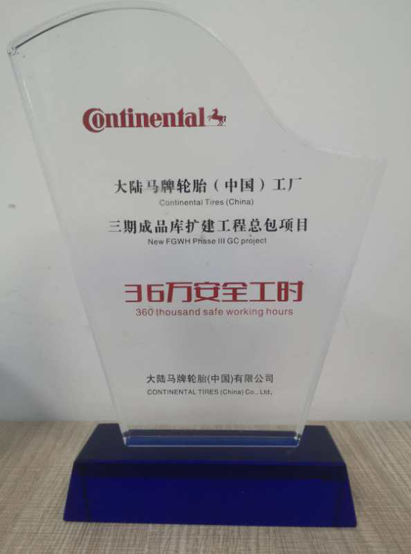 近日,大陸馬牌輪胎(中國)有限公司授予安徽安裝公司“優質承包商”獎牌和“36萬安全工時”獎杯。