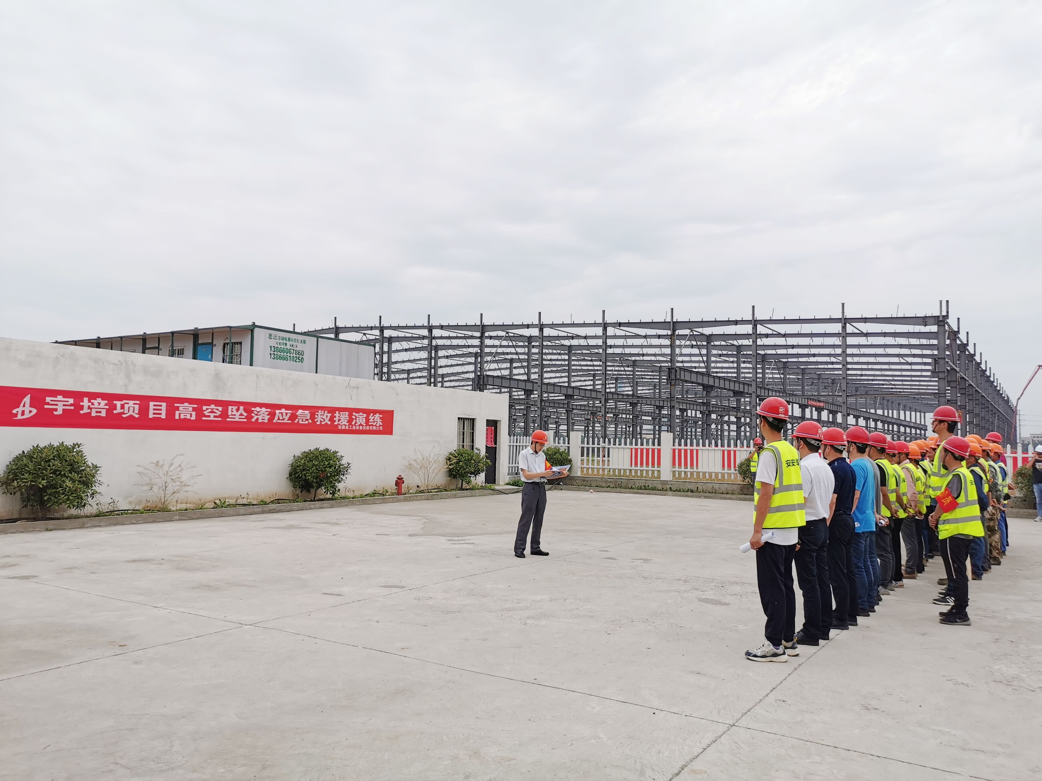 為了做好突發(fā)安全事故應(yīng)急救援工作,進(jìn)一步加強(qiáng)檢驗(yàn)公司、分公司及項(xiàng)目部三級(jí)應(yīng)急響應(yīng)能力,促進(jìn)應(yīng)急救援的體系建設(shè),2020年5月25日下午,安徽安裝公司在蕪湖宇培新型裝配材料有限公司年產(chǎn)50萬(wàn)方建筑工業(yè)化構(gòu)件生產(chǎn)基地項(xiàng)目1#廠(chǎng)房作業(yè)區(qū)舉行了高空墜落應(yīng)急救援演練,公司紀(jì)委書(shū)記、工會(huì)主席李寬旭及公司、分公司相關(guān)部門(mén)同志一行赴項(xiàng)目參加此次演練活動(dòng)。