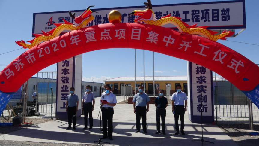 2020年5月28日,烏蘇市2020年重點項目集中開工儀式在烏蘇市供水改擴建調(diào)節(jié)蓄水池工程項目部召開。塔城地區(qū)地委委員阿依丁·托留汗,烏蘇市政協(xié)黨組書記王永安,烏蘇市委常委、常務副市長陳斌,塔城地區(qū)水利局、國土資源局等相關部門領導及項目各參建單位參加開工儀式,開工儀式由陳斌主持。