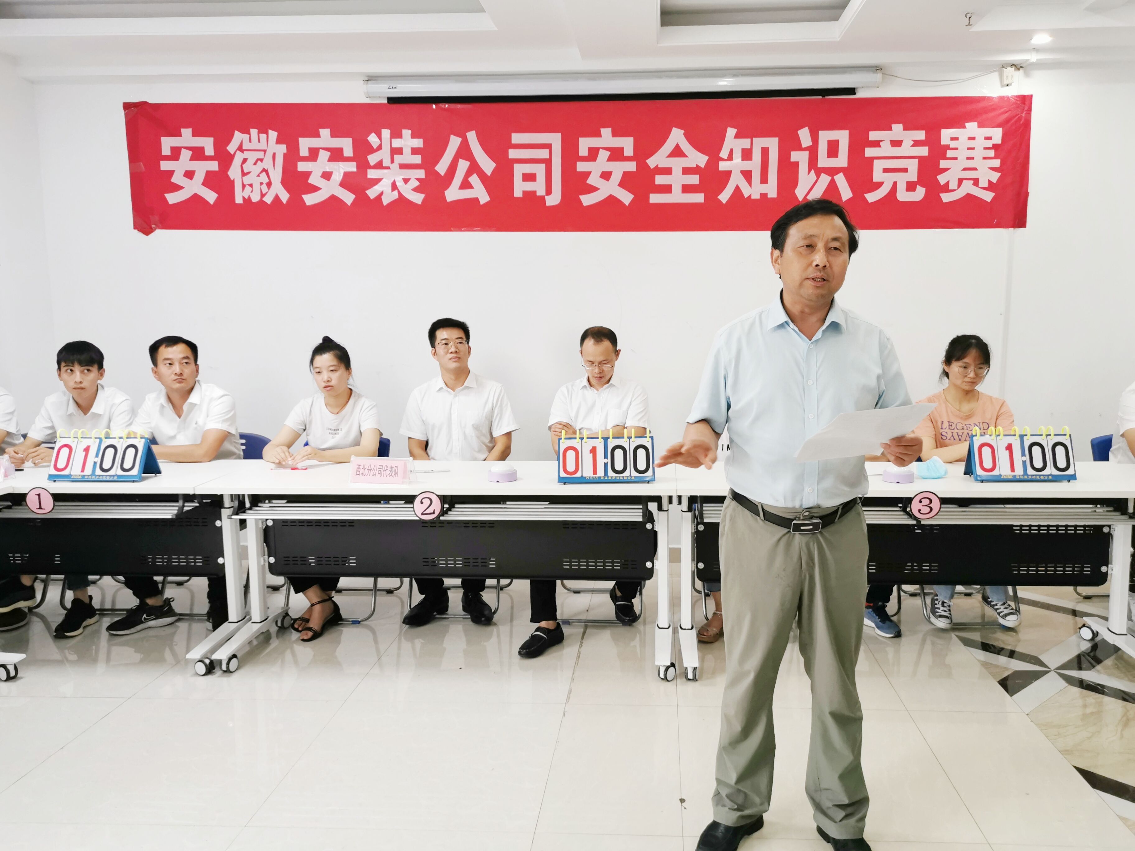 為切實開展2020年全國第十九個“安全生產(chǎn)月”活動,進(jìn)一步提高全員安全意識與知識水平,普及疫情防控相關(guān)知識,6月11日下午,安徽安裝公司舉辦安全生產(chǎn)知識競賽。公司黨委書記、董事長胡六中,副總經(jīng)理高飛,紀(jì)委書記、工會主席李寬旭,副總經(jīng)理李原,總工程師吳繼成應(yīng)邀出席。