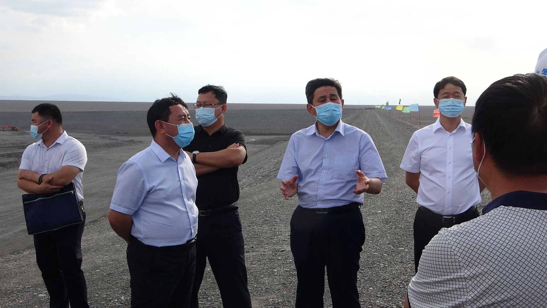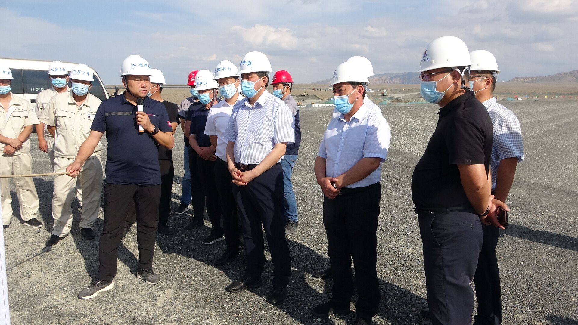 2020年7月5日下午,塔城地委副書記、行署專員木合亞提·加爾木哈買提赴安徽安裝公司新疆烏蘇市供水改擴(kuò)建調(diào)節(jié)蓄水池工程調(diào)研指導(dǎo)工作,烏蘇市委副書記、市長阿達(dá)力別克·巴合提汗,市委常委、副市長賈成海,副市長牛義強(qiáng)、李鴻等參加。