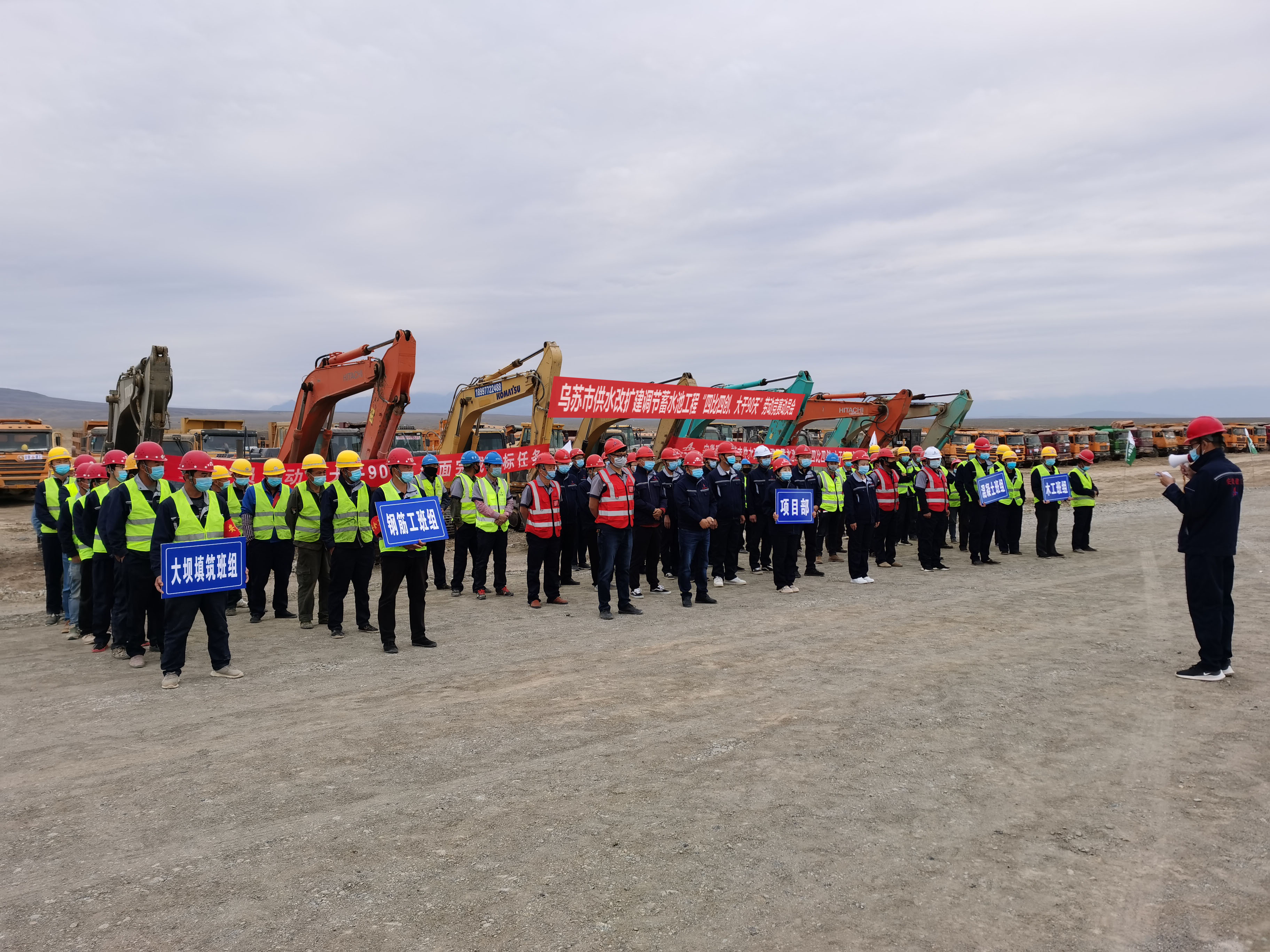 動員會上宣讀了《關于組織開展烏蘇市供水改擴建調節蓄水池工程項目“四比四創、大干90天”勞動競賽的實施方案》,明確了競賽的指導思想、競賽主題、競賽時間、競賽范圍、責任劃分、節點目標、考核內容、獎罰措施等。