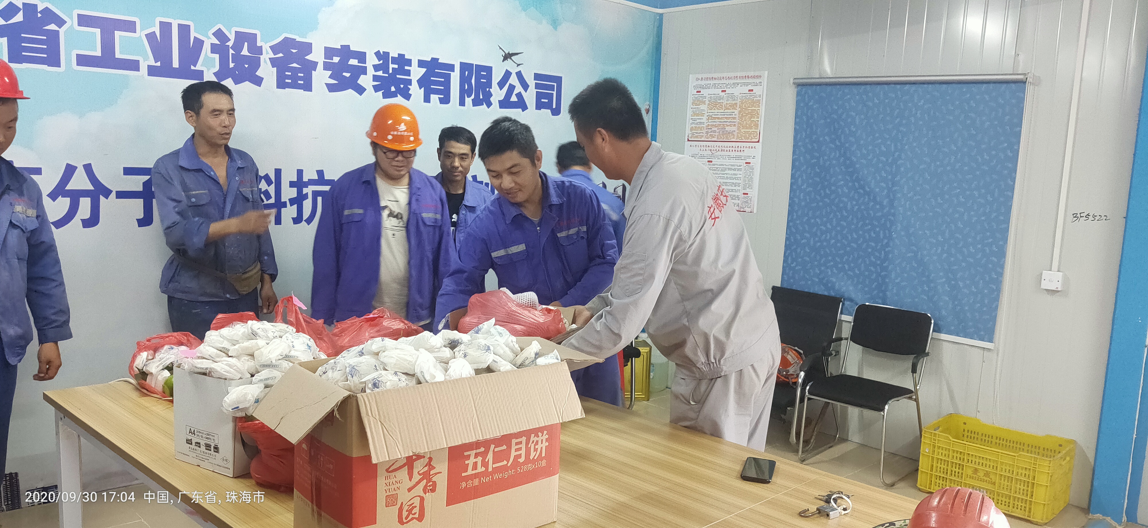 9月30日,在2020年中秋節國慶節“雙節”來臨之際,西北分公司珠海利安隆項目部組織開展了“雙節”送溫暖活動——為仍奮斗在一線項目建設者們送上了一份節日的祝福。