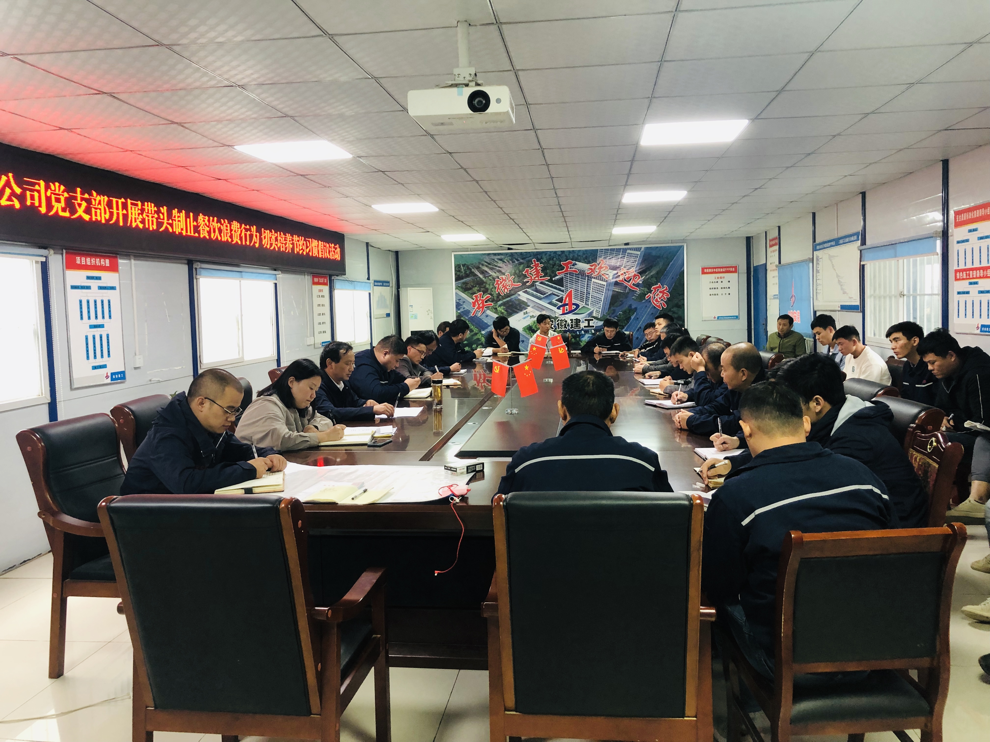 10月15日,房建(裝飾)分公司黨支部在阜陽(yáng)潁東中醫(yī)院PPP建設(shè)項(xiàng)目組織集中學(xué)習(xí)宣傳貫徹習(xí)近平總書(shū)記考察安徽重要講話精神及開(kāi)展帶頭制止餐飲浪費(fèi)行為切實(shí)培養(yǎng)節(jié)約習(xí)慣的倡議簽名活動(dòng)。