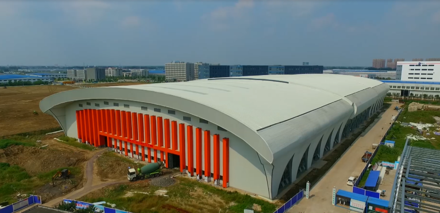 淮河試驗研究中心(水工河工模型試驗廳)一期工程總建筑面積約20000㎡,結構形式為排架柱(圓鋼管)+三肢管桁架結構,構件高度24米,跨度100米,抗震設防烈度為7度,為目前安徽省建設第二大跨度的鋼結構工程。在項目施工過程中,安徽安裝公司嚴格按照設計圖紙及施工規范要求認真組織安排施工,以一流的管理、一流的技術、一流的服務,在保證工程質量和施工安全的前提下,攻克了桁架跨度大、吊裝作業難度大等施工難點,確保了項目如期完工。項目主體結構安全可靠,總體效果達到同類工程先進水平,成為讓社會滿意的精品工程。