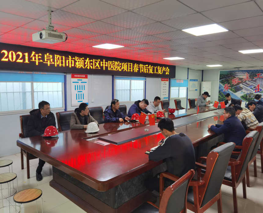 2月19日,公司副總經理高飛深入阜陽潁東區中醫院PPP項目一線組織召開了“2021年阜陽市潁東區中醫院項目春節后復工復產會”,對推進節后復工復產、做好疫情防控等工作提出具體要求。