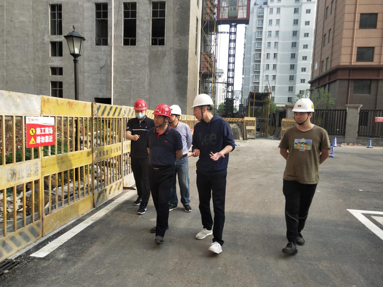 5月18日,公司副總經理高飛、總工程師吳繼成赴房建(裝飾)分公司淮北恒基城開元廣場項目檢查指導工作。