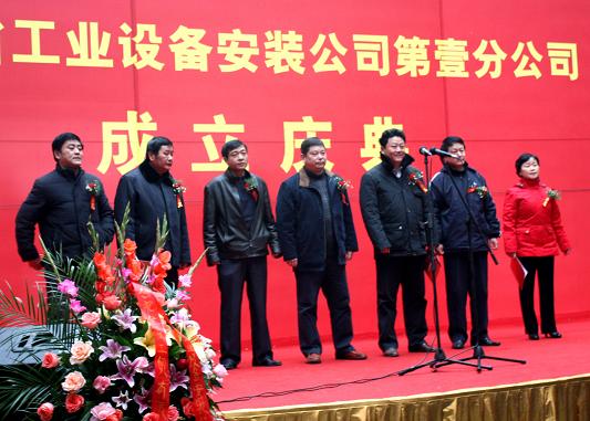 2010年元月10日,萬物萌生,瑞雪飄揚。經過長時間的醞釀和籌備,安徽省工業設備安裝公司第壹分公司終于揭牌成立。公司總經理王軍邦、黨委書記戴樹明攜公司黨政領導集體、合肥地區項目經理、分公司經理、機關部門負責人出席慶典,戴樹明書記主持儀式。