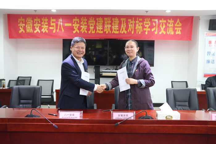 為深入開展貫徹落實全國國有企業黨的建設工作會議精神情況“回頭看”工作,持續夯實基層黨建工作基礎。11月5日上午,安徽安裝公司與中建八局第一建設有限公司安裝公司華中片區開展對標學習和黨建聯建共建活動,合肥分公司黨支部與八一安裝華中片區黨支部簽訂結對共建協議。