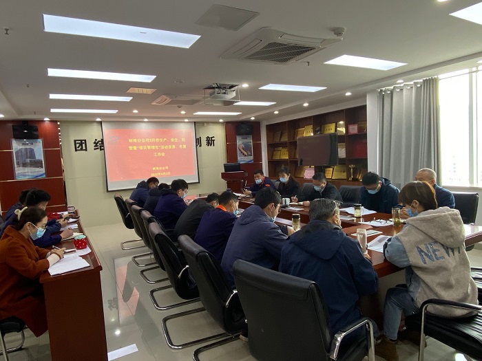 4月2日上午,蚌埠分公司召開3月份生產、安全、經營暨“項目管理年”活動宣貫會議,分公司領導班子成員、部門負責人、各在建項目經理及工程管理部全體員工參會,會議由分公司副經理郭洋主持。