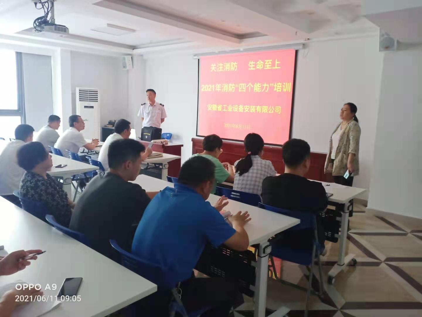 為進一步加強公司機關全體員工消防安全意識,提高員工自我防范和自救互救能力,6月11日上午,安徽安裝公司以“安全生產月”活動為契機,特邀消防培訓中心教官為公司職工進行了一場生命至上消防“四個能力”安全知識技能培訓。公司副總經理李原應邀出席本次培訓,機關各部門40余名職工參加了培訓。