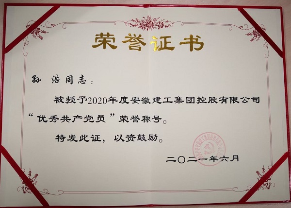 他就是孫浩,現任蚌埠康寧藥用玻璃項目副經理。他以自己的實際行動詮釋著一個共產黨員的初心和擔當,以自己的工作成績贏得了公司領導和同事們的信任與肯定。他忠愛于自己所從事的工作,堅定著自己的理想信念,時刻以黨員的標準嚴格要求自己,奮勇當先、兢兢業業,用堅持不懈的努力與認真負責的精神,在施工管理崗位中,展現出一名共產黨員的本色,榮獲2020年度“建工集團年度優秀共產黨員”稱號。