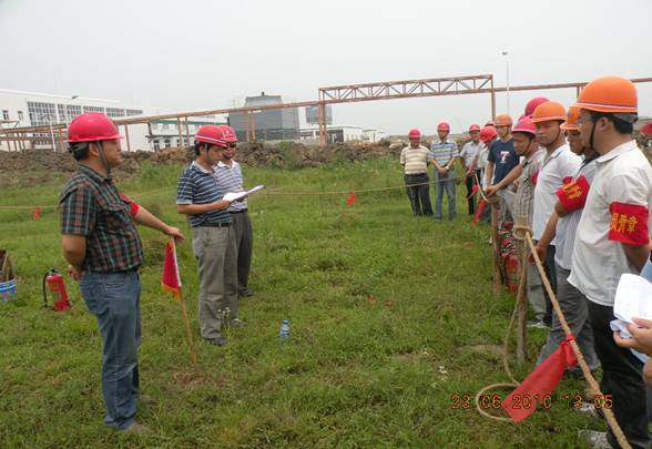 為全面開展好“全國安全生產(chǎn)月”應(yīng)急預(yù)案演練周活動,切實提高企業(yè)應(yīng)對突發(fā)火災(zāi)事故處理能力和水平,2010年6月23日,公司保衛(wèi)處和生產(chǎn)處牽頭在肥東豐樂農(nóng)化中間體項目現(xiàn)場進(jìn)行了一次火災(zāi)事故應(yīng)急演練,副總經(jīng)理劉安俊擔(dān)任總指揮,各項目部均派人參加。