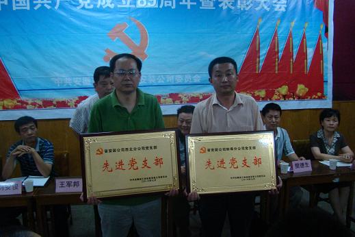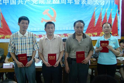 為紀念中國共產黨成立89周年,公司黨委于6月29日下午召開了“紀念中國共產黨成立89周年暨‘創先爭優’表彰大會”。公司在崗黨員、非黨員中層干部、入黨積極分子以及受表彰的先進集體、先進個人參加了大會。大會由總經理王軍邦同志主持。
