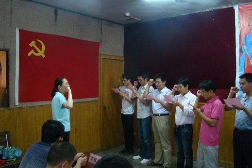 在激昂的國際歌和莊嚴的入黨宣誓之后,大會進行表彰授獎儀式。在熱烈的掌聲中,兩個先進黨支部、4名優秀黨務工作者和10名優秀共產黨員依次上臺領獎。