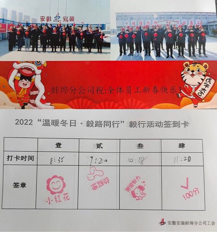 為展示安徽安裝蚌埠分公司員工積極向上的精神風(fēng)貌,倡導(dǎo)健康環(huán)保的生活理念,1月20日上午,分公司工會舉辦了一場主題為“溫暖冬日 毅路同行”的徒步毅行活動,分公司50余名員工參加活動。