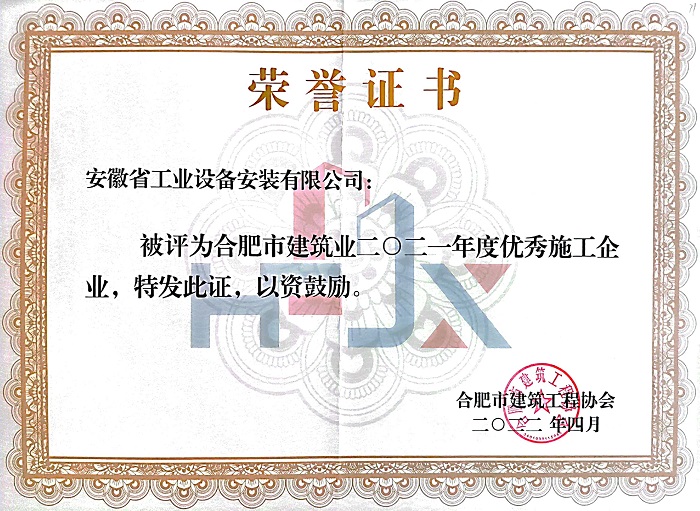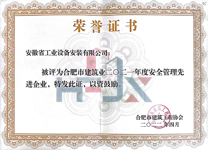 近日,合肥市建筑工程協(xié)會(huì)傳來喜訊,2021年度合肥市優(yōu)秀企業(yè)、單項(xiàng)先進(jìn)企業(yè)的評(píng)選已出爐,安徽安裝再次斬獲“合肥建筑業(yè)優(yōu)秀施工企業(yè)”“合肥建筑業(yè)安全管理先進(jìn)企業(yè)”榮譽(yù)稱號(hào)。