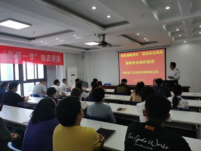 為了普及消防安全教育,進(jìn)一步加強(qiáng)全體員工消防安全意識(shí),提高自我防范和自救能力,5月6日上午,安徽安裝公司邀請(qǐng)安徽政安防火教育中心教官為公司職工進(jìn)行了一場(chǎng)安全知識(shí)技能培訓(xùn)。公司副總經(jīng)理李原應(yīng)邀出席本次培訓(xùn),公司機(jī)關(guān)各部門,各分公司安全員共40余名職工參加了培訓(xùn)。