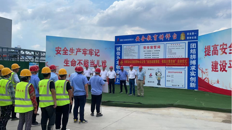 房建(裝飾)分公司安徽壹石通化學科技廠房項目組織開展“安全月”應急演練活動