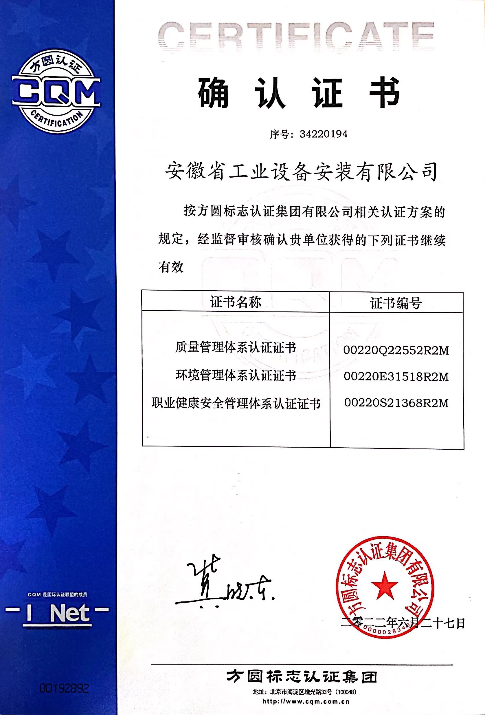 公司順利通過2022年質量、環境、職業健康安全管理體系監督認證審核