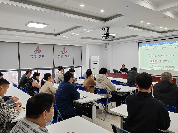 為進(jìn)一步提升公司員工對(duì)特種設(shè)備許可的理解,切實(shí)做好壓力管道(GC1)許可換證迎審材料準(zhǔn)備工作。11月22日上午,安徽安裝公司在15樓職工之家舉辦“特種設(shè)備生產(chǎn)和充裝單位許可規(guī)則TSG07-2019”專題學(xué)習(xí)培訓(xùn)。培訓(xùn)邀請(qǐng)了安徽省特種設(shè)備檢測(cè)院原總工、正高級(jí)工程師許久勝授課。公司機(jī)關(guān)、所屬各單位相關(guān)部門人員約50余人參加培訓(xùn)。培訓(xùn)以現(xiàn)場(chǎng)加視頻的形式召開(kāi)。