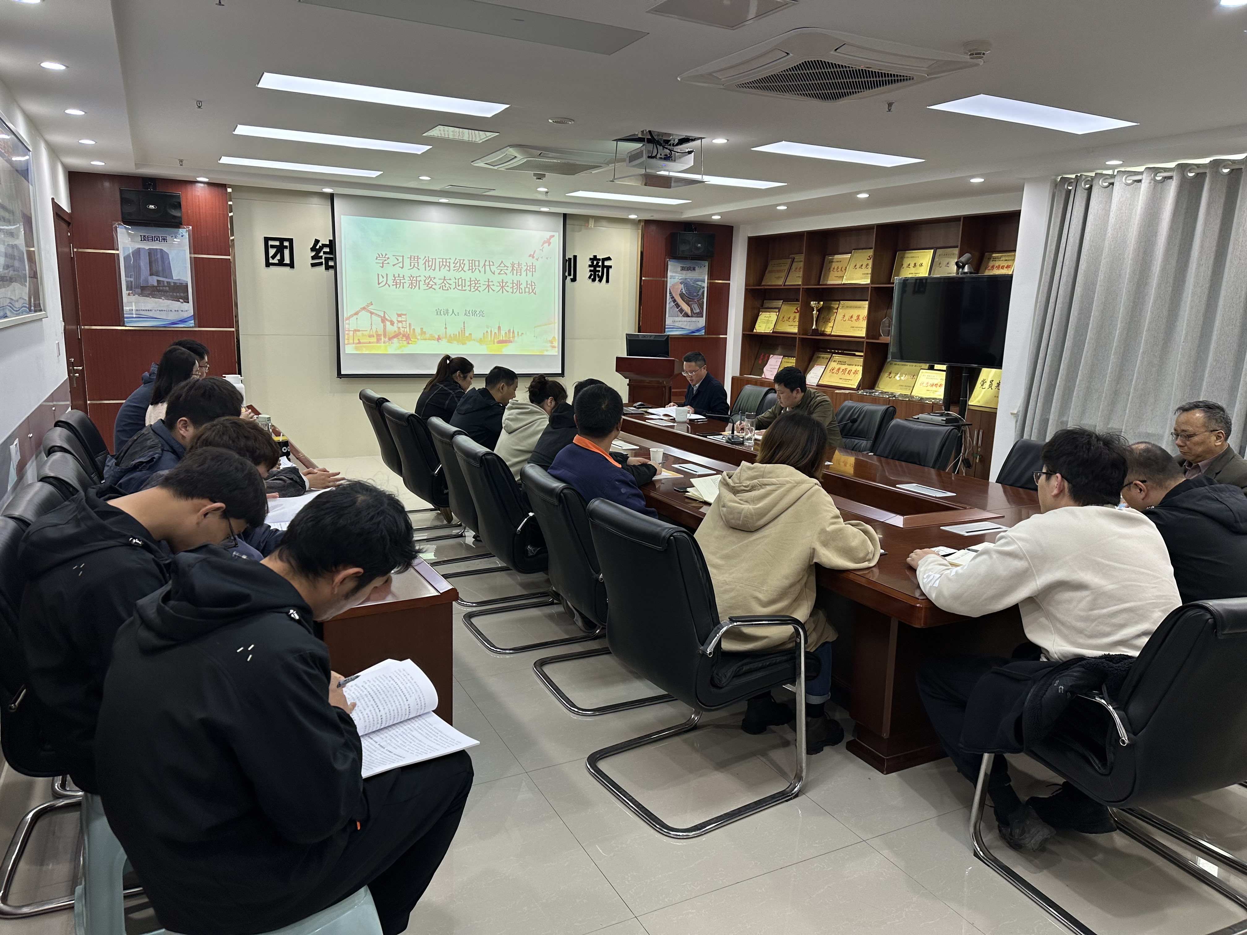 為持續(xù)抓好黨的二十大精神學(xué)習(xí),貫徹落實(shí)兩級(jí)職代會(huì)精神,4月24日下午,蚌埠分公司黨支部組織召開專題學(xué)習(xí)會(huì),分公司經(jīng)理、黨支部副書記趙銘亮就深入學(xué)習(xí)兩級(jí)職代會(huì)精神上專題黨課,分公司機(jī)關(guān)全體員工、三個(gè)基地項(xiàng)目、康寧項(xiàng)目及馬鞍山項(xiàng)目員工參加學(xué)習(xí)會(huì),會(huì)議由分公司黨支部書記、副經(jīng)理王偉主持。