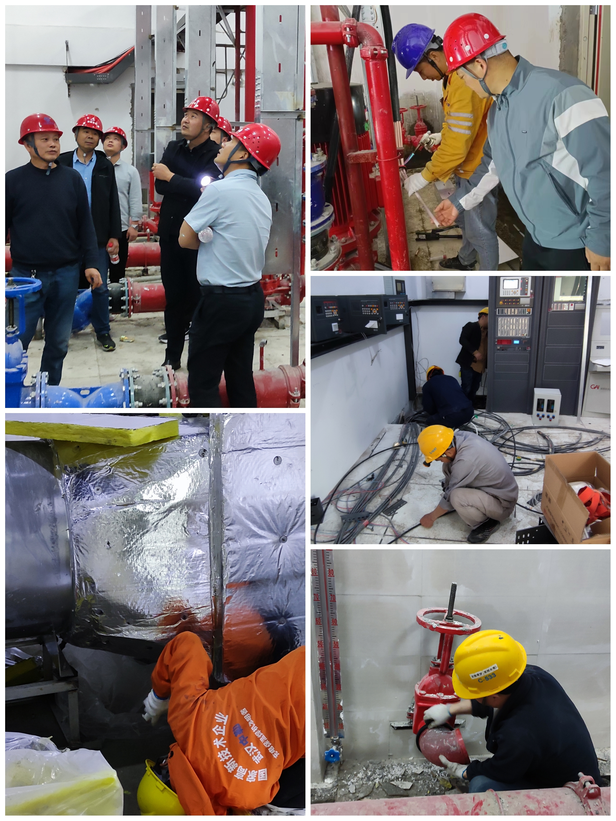 項目部通過夜以繼日的工作,影院、商鋪、酒店及地下室水電、消防及通風工程量已基本完成,水電班組進行剩余配電箱接線、燈具安裝、橋架蓋板安裝等工作,消防班組進行消防管補漆、消防管打壓及消防弱電調試工作,通風班組進行剩余通風管道保溫工作。接下來的工作,如何確保消防聯動驗收滿足要求,成為了能否順利驗收的關鍵。項目部將繼續發揚“特別能吃苦,特別能戰斗”的企業作風,以高昂的斗志、火熱的激情、開足馬力、全力以赴、趕工期、搶進度,以“齊心協力共奮進,搶工大干不打烊”的工作姿態按時完成施工任務,向公司交上一份滿意的答卷。