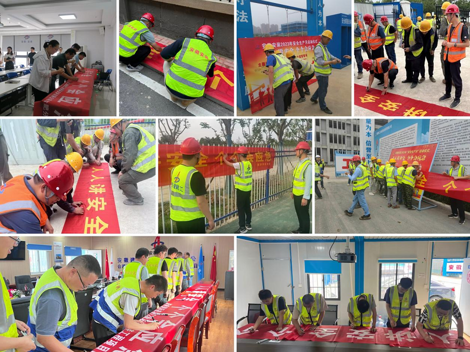 在第二十二個(gè)全國(guó)“安全生產(chǎn)月”來(lái)臨之際,安徽安裝合肥分公司積極響應(yīng),全面落實(shí)省、市、集團(tuán)公司以及公司“安全生產(chǎn)月”活動(dòng)部署。6月1日上午,分公司組織機(jī)關(guān)及所屬在建項(xiàng)目舉行了“安全生產(chǎn)月”動(dòng)員會(huì),集中學(xué)習(xí)了習(xí)近平總書(shū)記關(guān)于安全生產(chǎn)重要論述,并開(kāi)展了集體安全宣誓、橫幅簽名、觀看2023年安全生產(chǎn)月警示教育片等各項(xiàng)活動(dòng)。
