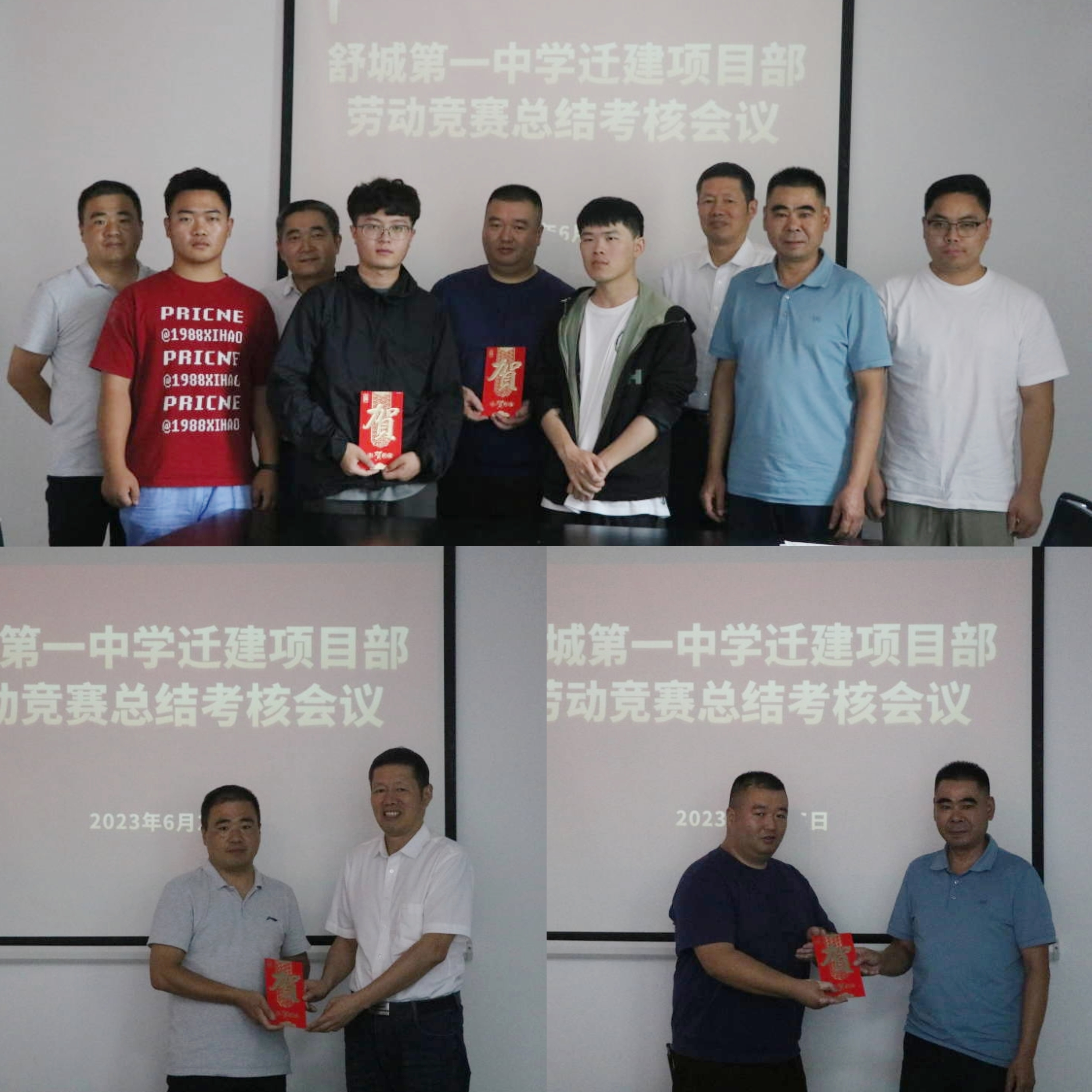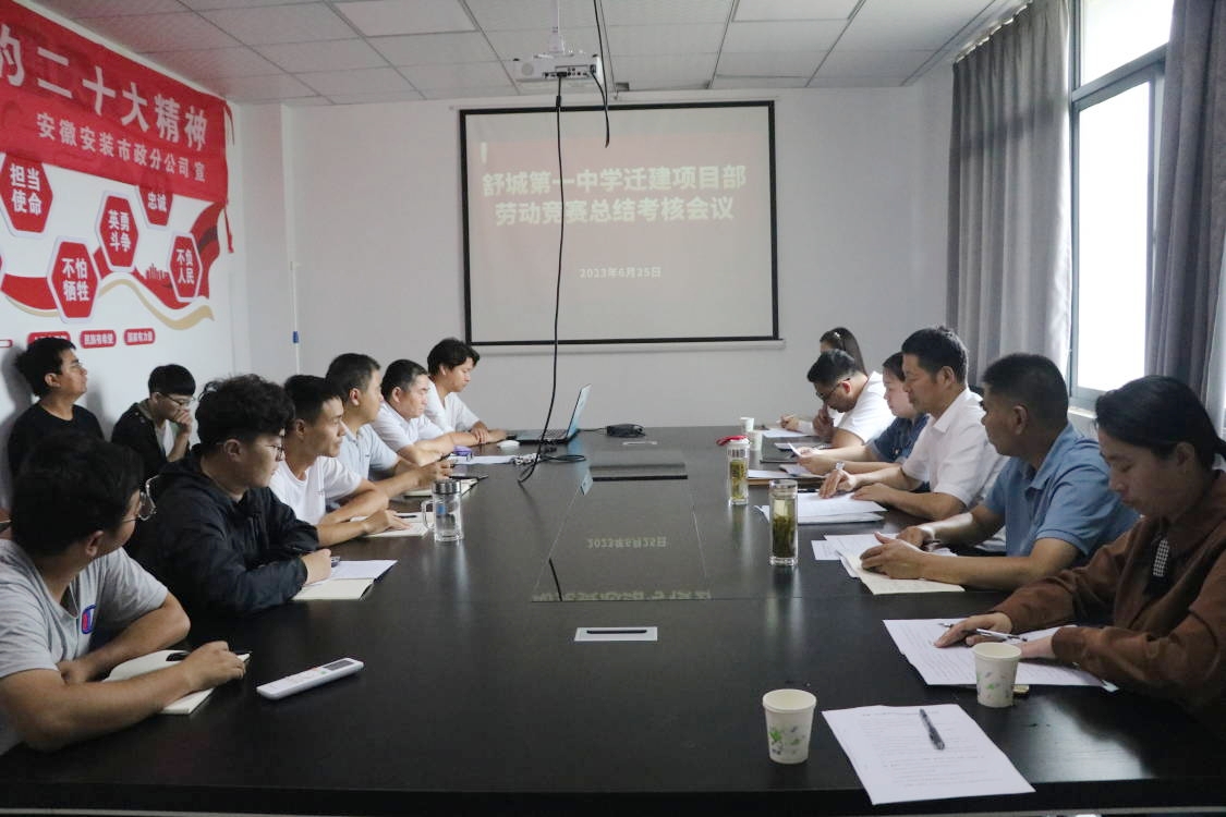 6月25日,市政分公司黨支部書記胡迎東、副經理張漢軍赴舒城一中遷建工程項目部開展項目勞動競賽考核工作。項目部全體管理人員及勞務班組代表參加。