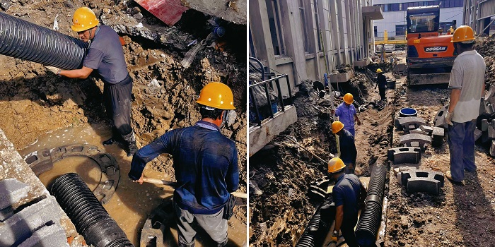 肥西安信立士項目正在進行室外雨污水管施工