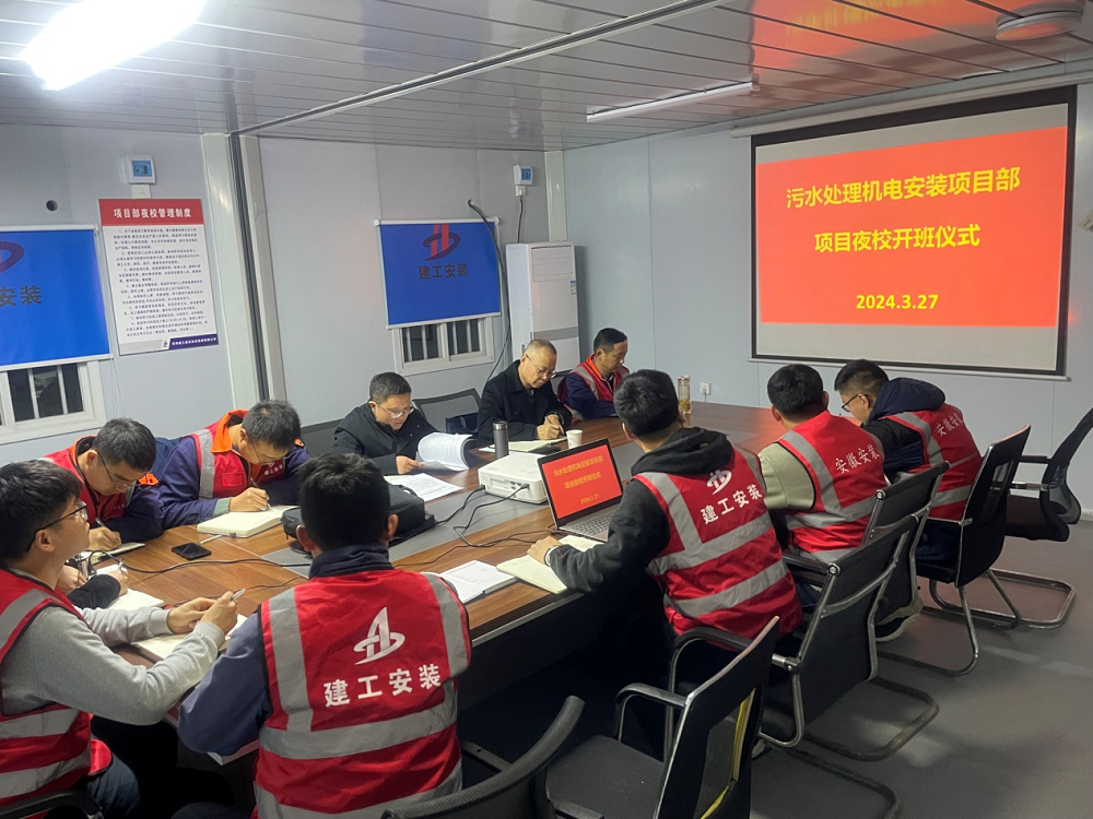 為加強項目人才隊伍建設,進一步提升項目團隊專業化水平,著力培養符合項目管理實際的復合型人才,打造學習型項目部,3月27日晚,蚌埠污水處理站項目“夜校”學習班正式開班,建工安裝蚌埠分公司經理、黨支部副書記趙銘亮為項目夜校開班進行了動員并親自授課,項目部全體人員參加。