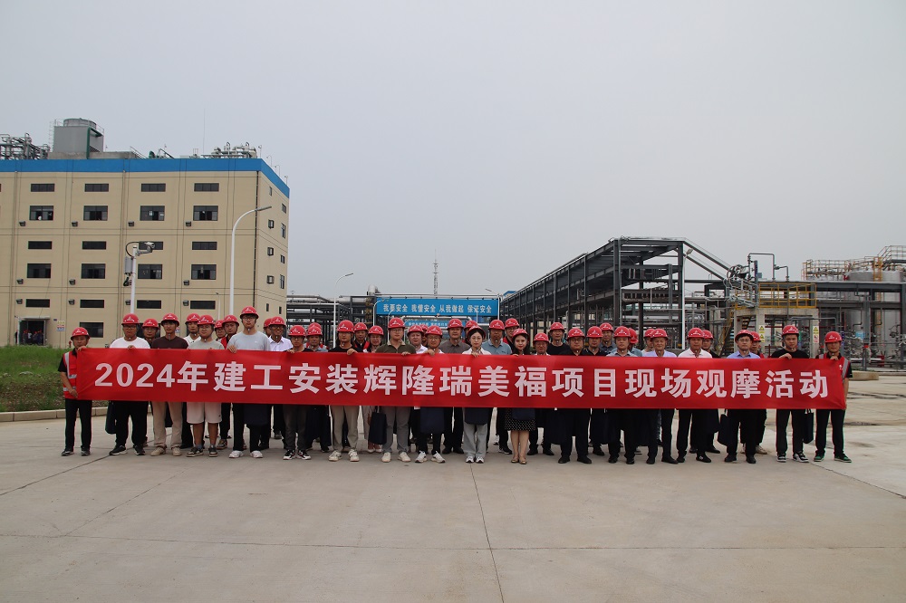 輝隆瑞美項目福位于安徽省蚌埠市淮上經濟開發區,共涉及六個標段,工程總造價1億6千萬元,施工內容涉及土建、安裝、裝飾等,屬大型綜合性工程。觀摩人員在項目負責人的引導和介紹下依次參觀了項目罐區、氯蟲一二三車間以及中心控制室。同時,詳細了解了項目結構、現場工藝原理、生產流程以及生產車間各類器材防爆措施以及項目遠程可視化監測、現場設備遠程操控等。