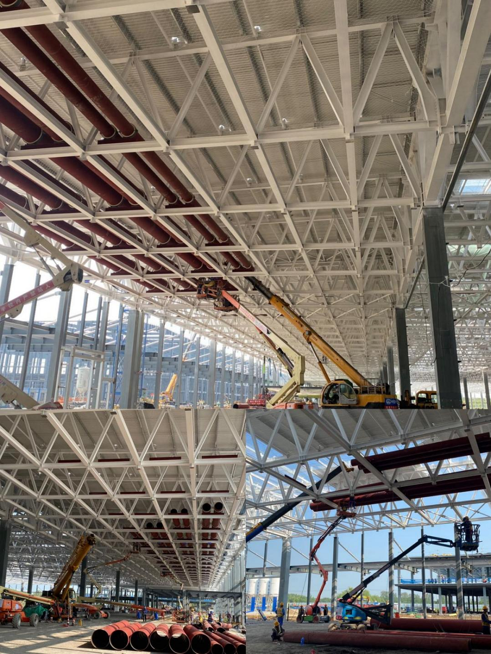 該項目工期緊、任務重,項目部開足馬力搶抓節點,充分合理調配人、材、機及資金等資源。為搶抓晴好天氣,錯峰高溫時段,管理人員靠前指揮,作業人員并聯推進、多點開花,加班加點、挑燈夜戰。在確保安全質量的前提下,優化施工方案,緊跟鋼結構及土建單位的施工進度“見縫插針”,全力推進本項目的建設進度。
